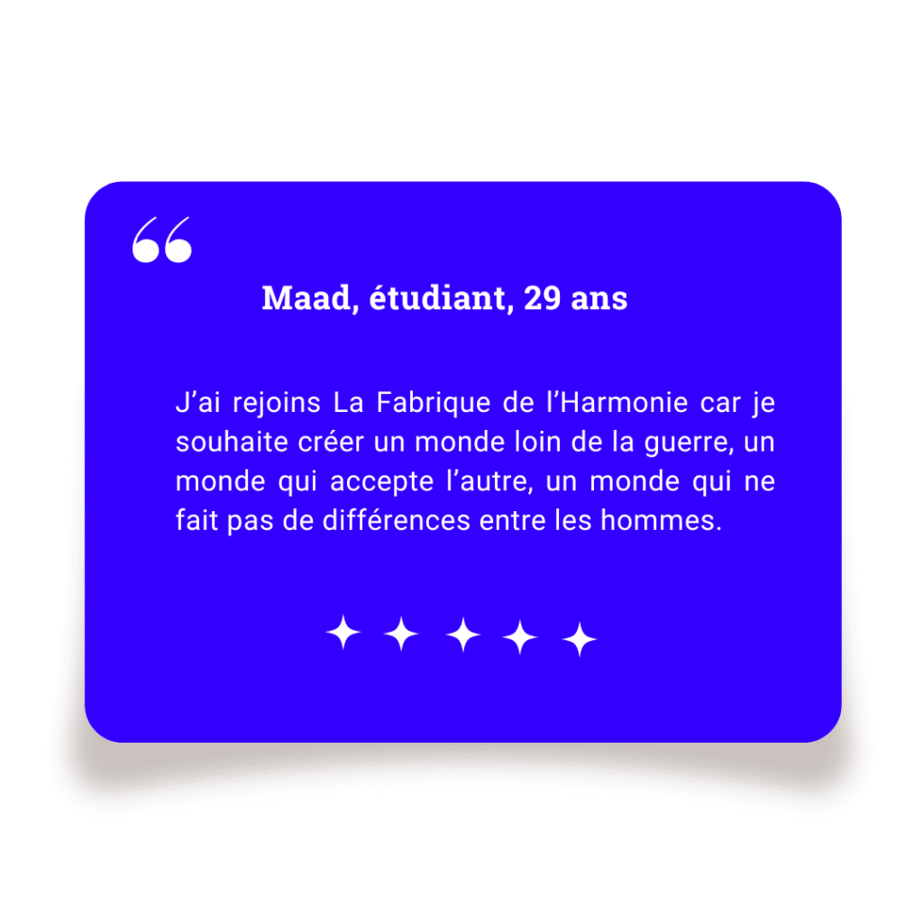Pour briser la précarité sociale qui touche les jeunes, nous réalisons des projets communs ensemble . Ça permet de créer des ponts et d’arrêter les malentendus qui touchent notre communauté !